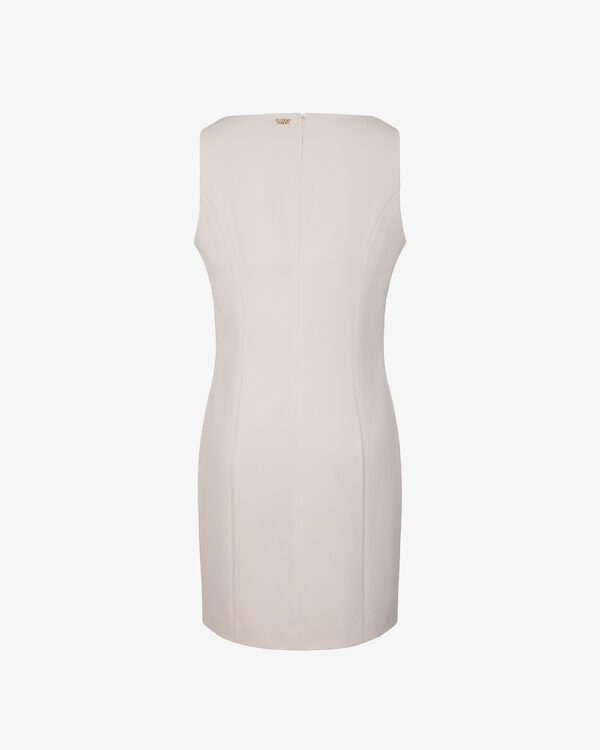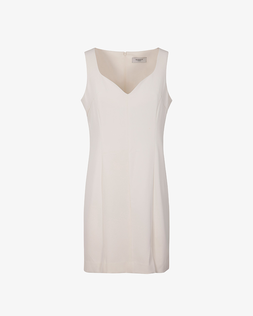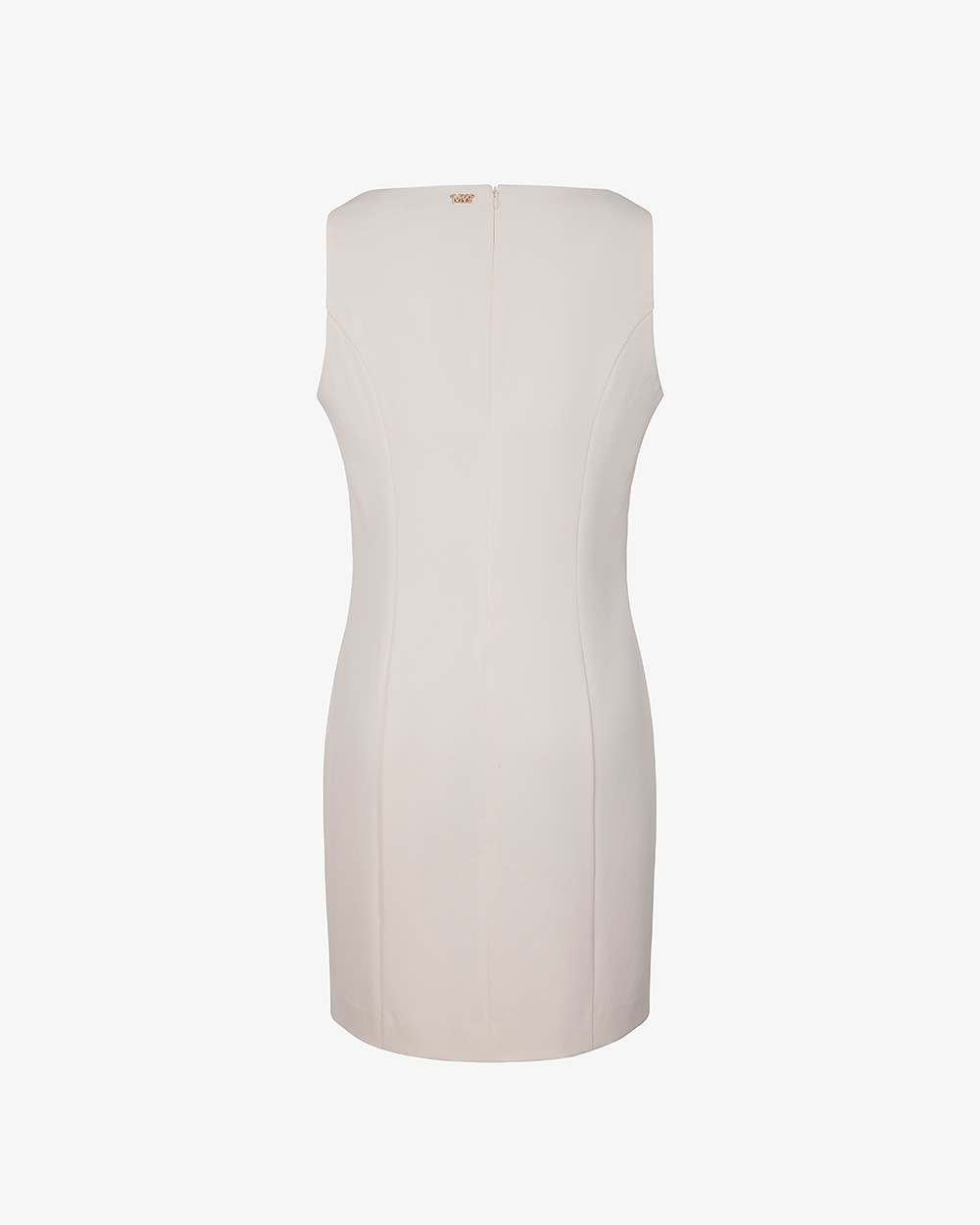 Abito in cady crepe con spacchi. Zip sul retro per la chiusura.