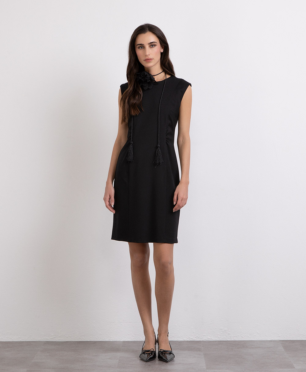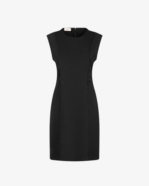 Abito smanicato in punto milano dettaglio arricciato