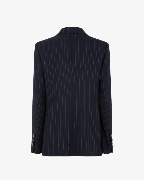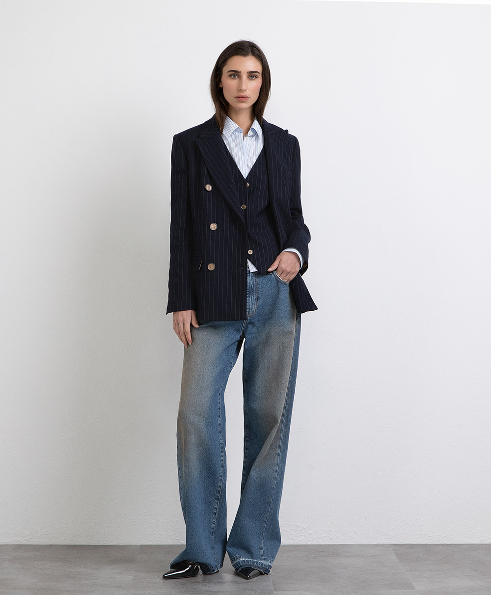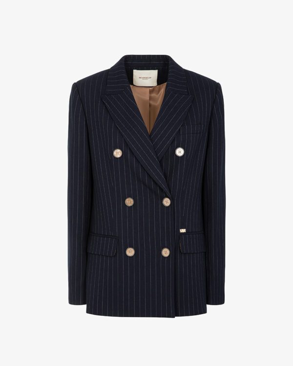 Blazer collo revers doppiopetto in tessuto gessato chiusura frontale con bottoni