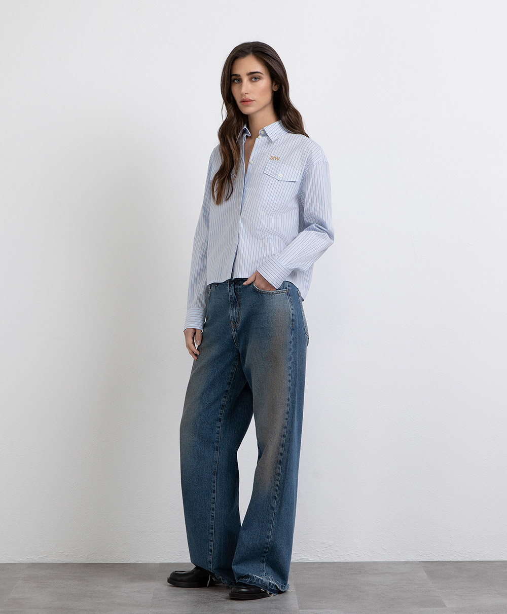 Camicia rigata con tasche chiusura con bottoni nascosta
