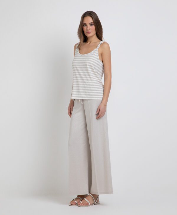 Canotta a righe in jersey fiammato, in cotone lurex.