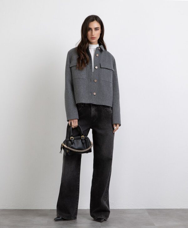 Cappotto corto con collo camicia e tasche abbottonatura centrale con bottoni
