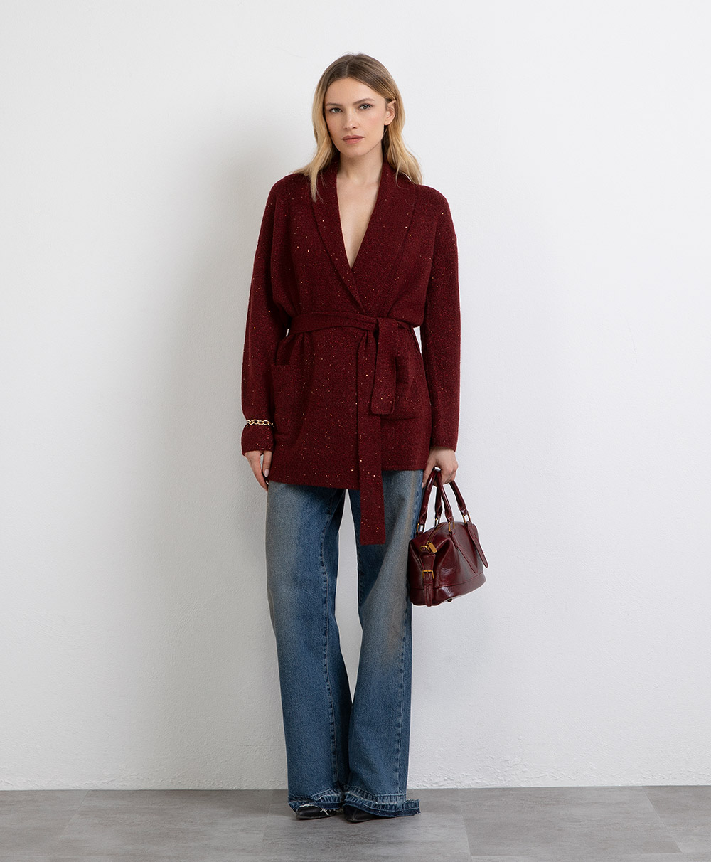 Cardigan ampio con filo paillettes con cintura