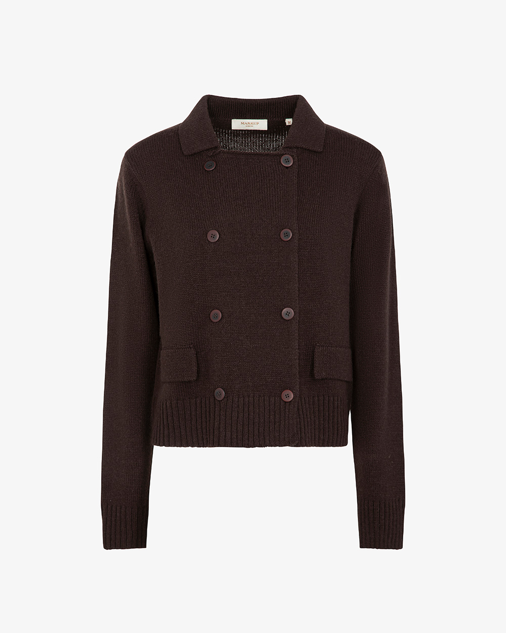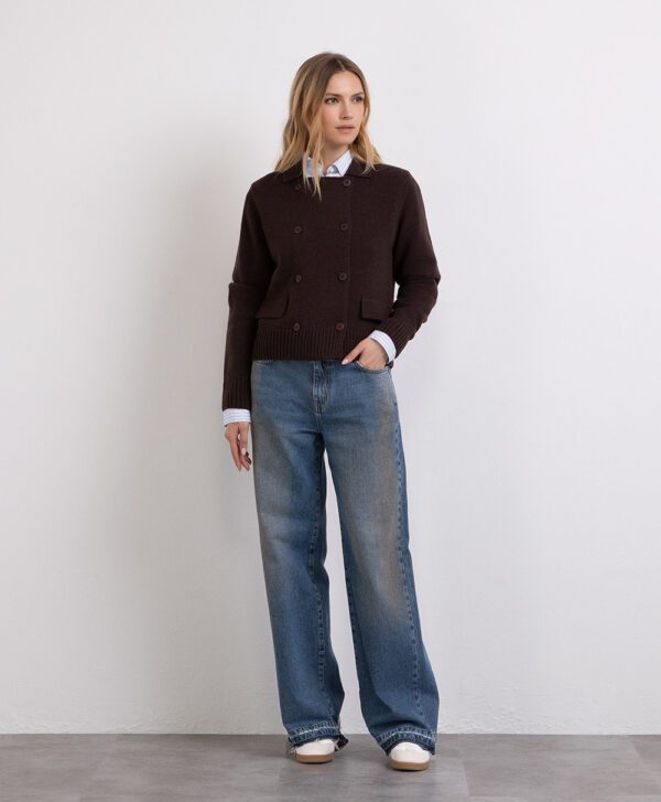 Cardigan doppiopetto misto lana e taschini frontali con pattina
