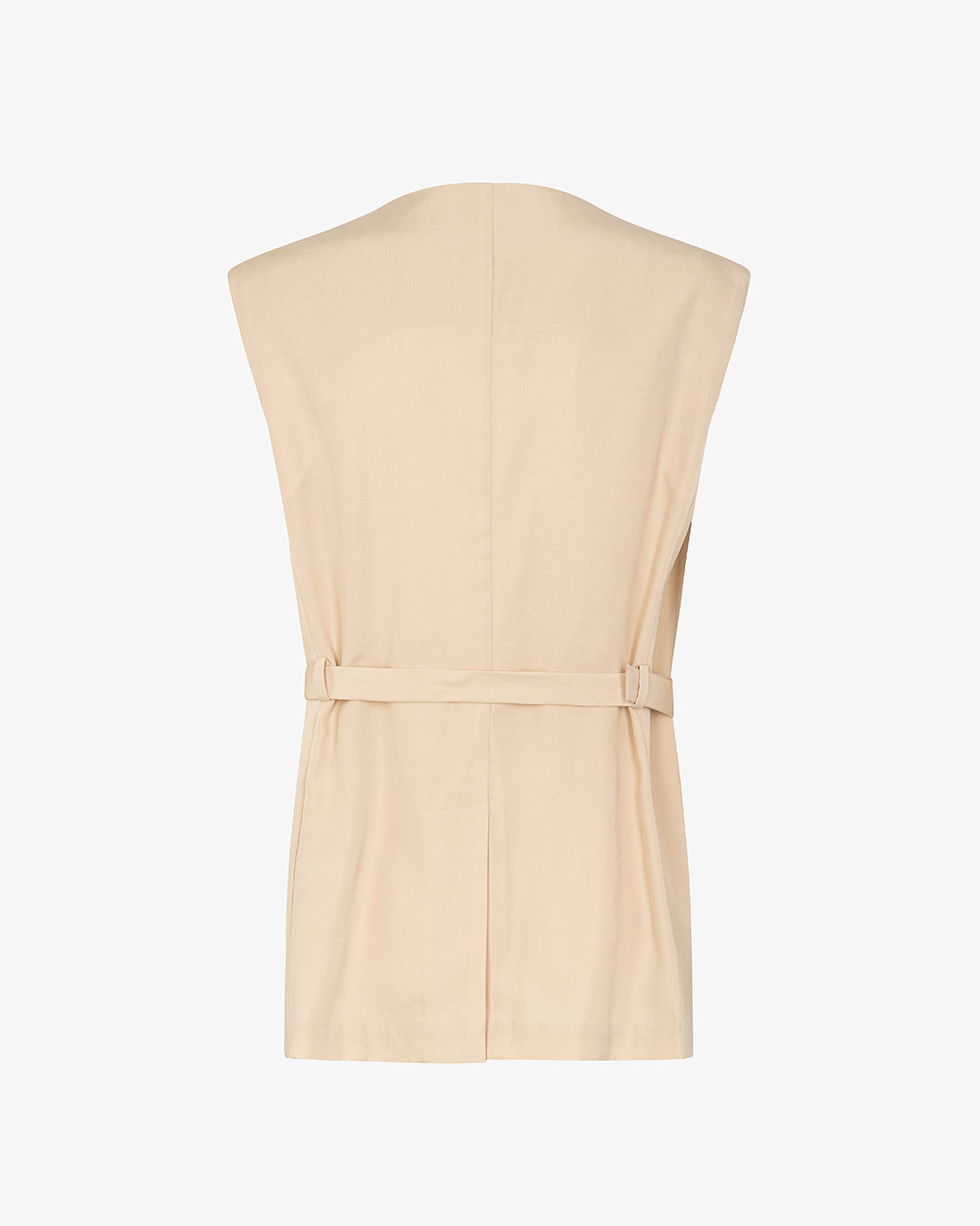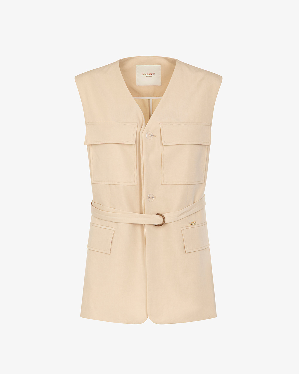 Gilet tasconato in misto lino con cintura e tasche frontali
