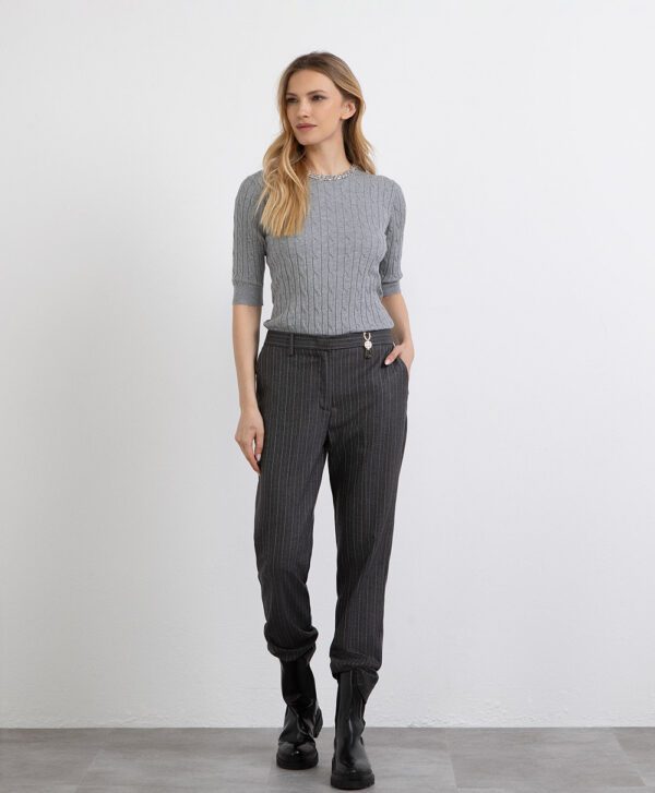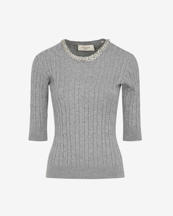 Girocollo manica al gomito con punto maglia treccia applicazioni gioiello