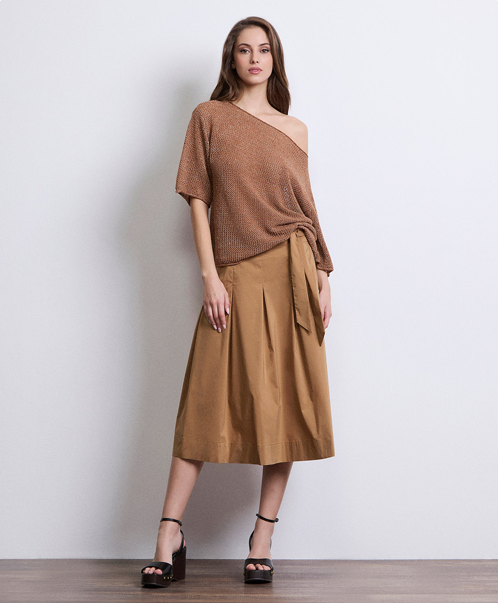 Gonna con pieghe e cintura in tela vela