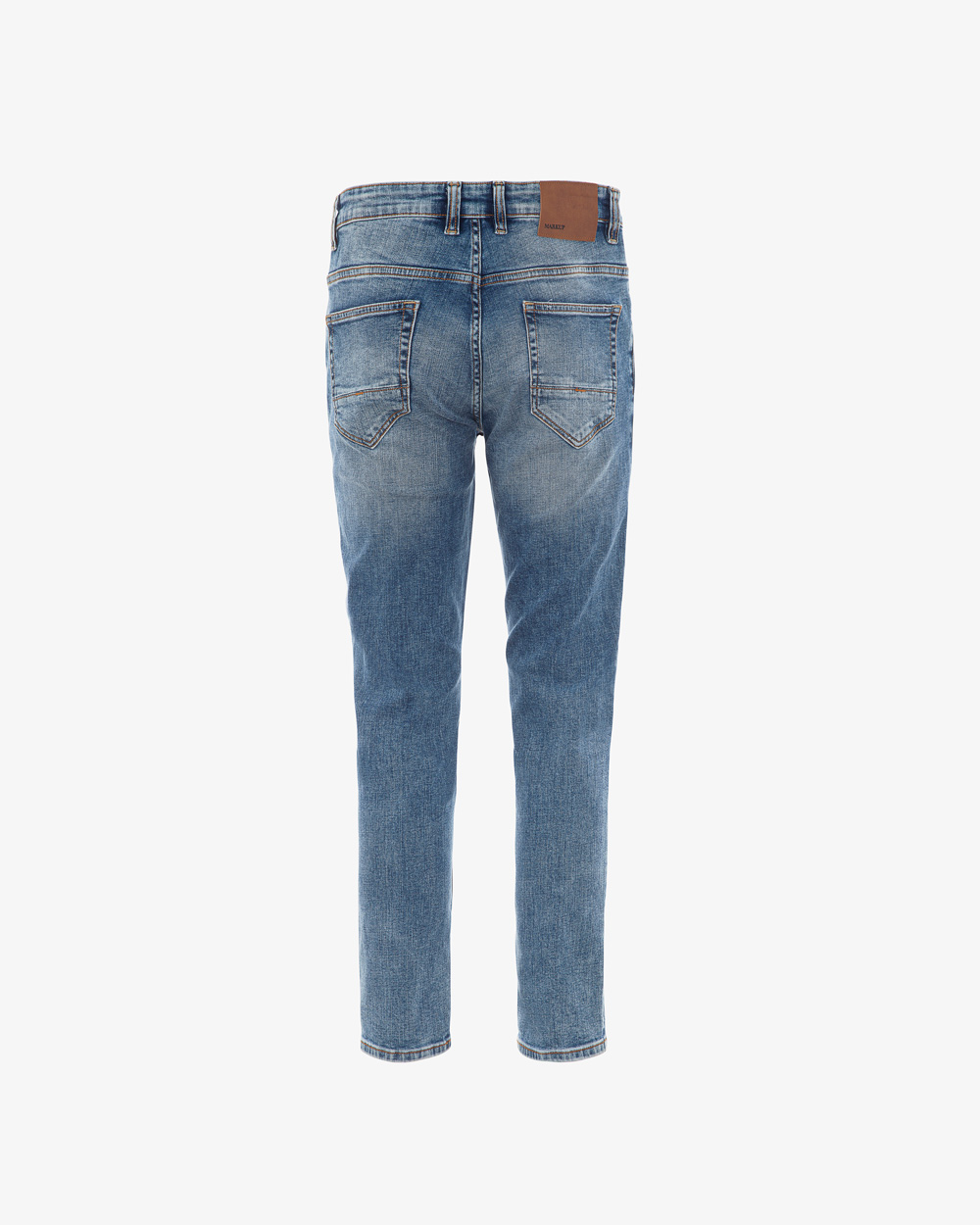 Jeans regular fit. Cinque tasche. Blue chiaro. Chiusura frontale con cerniera e bottone.