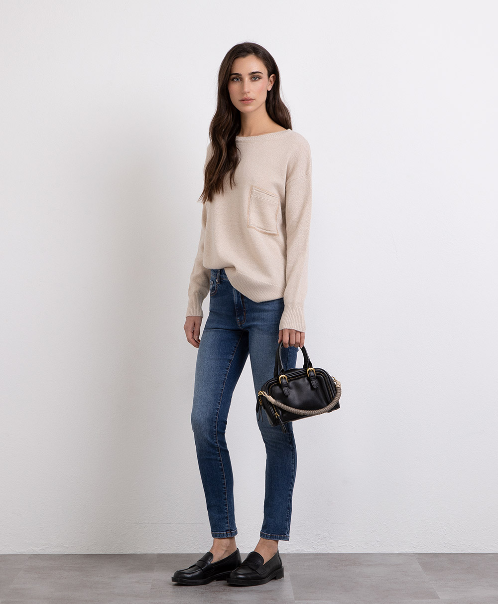 Maglia girocollo in tweed misto lana con taschino scollo ampio
