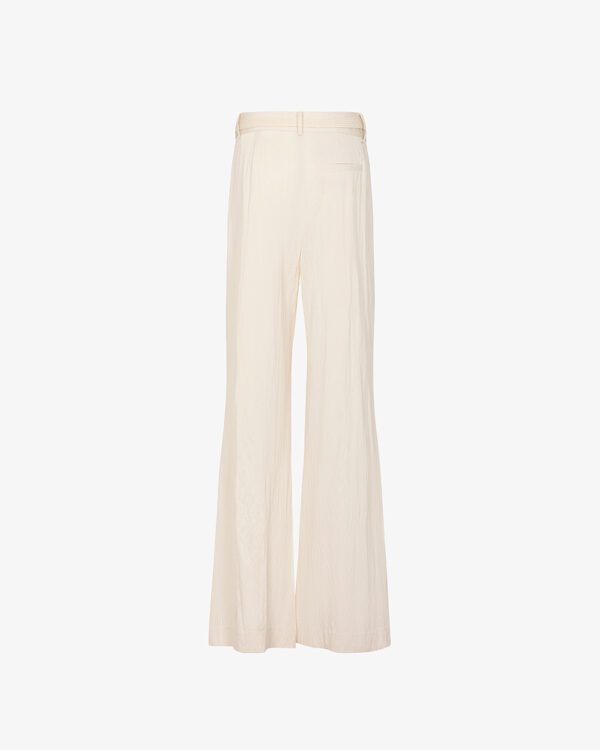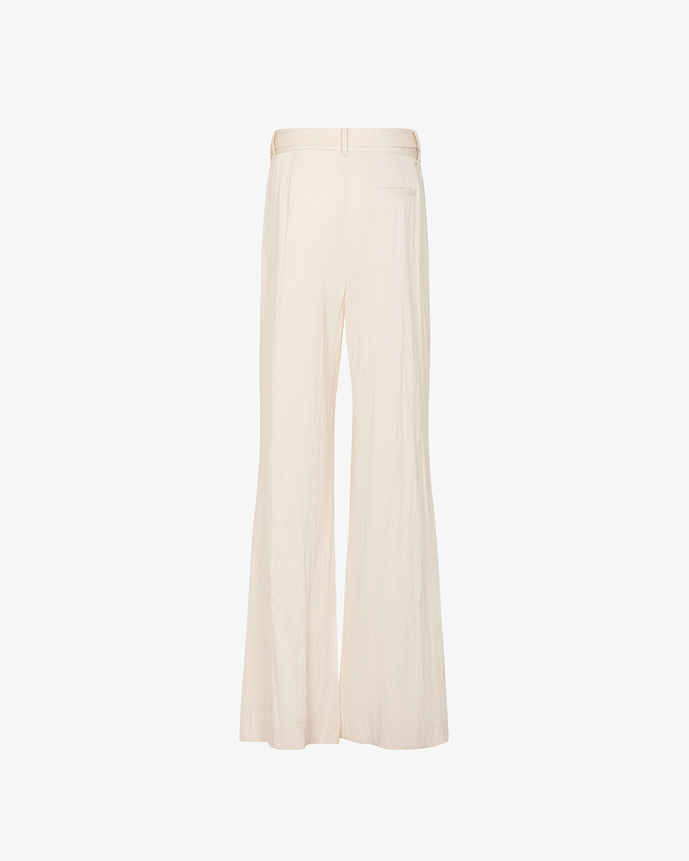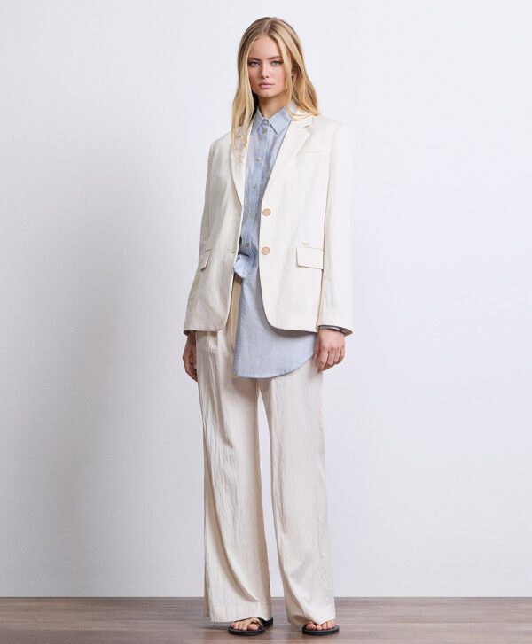 Pantalone lungo modello palazzo, vestibilità ampia e morbida sulla gamba, tasche laterali, chiusura con zip e bottone.