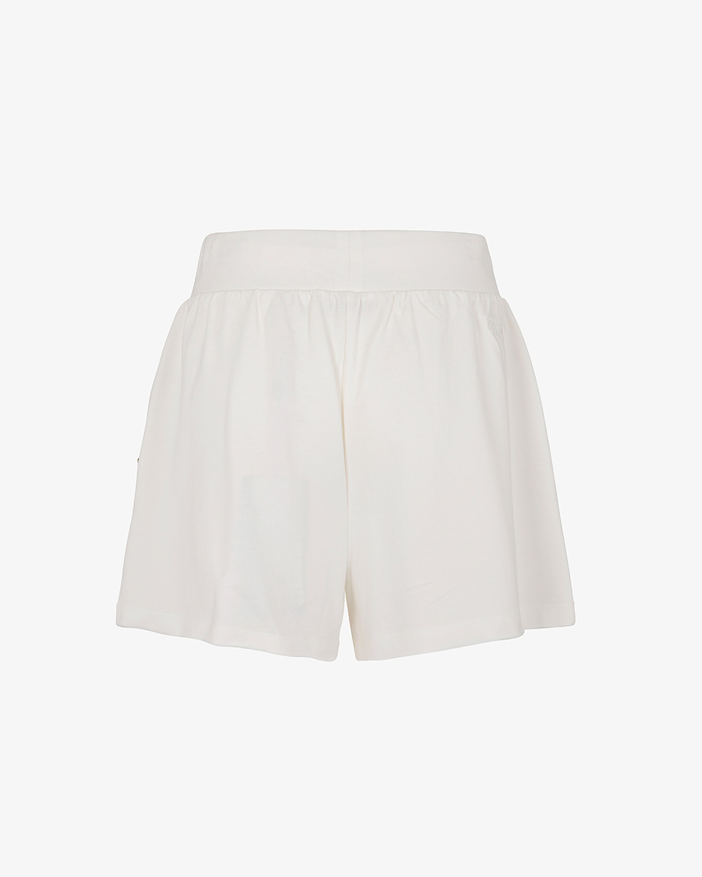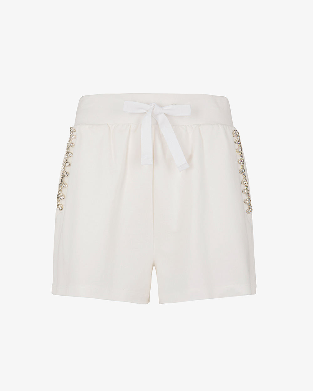 Short di felpa con applicazioni cabochon e coulisse in cotone.