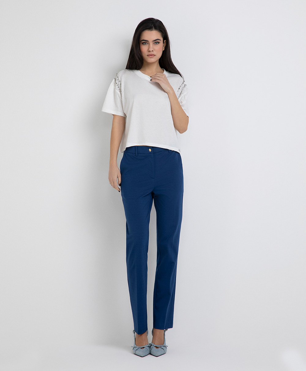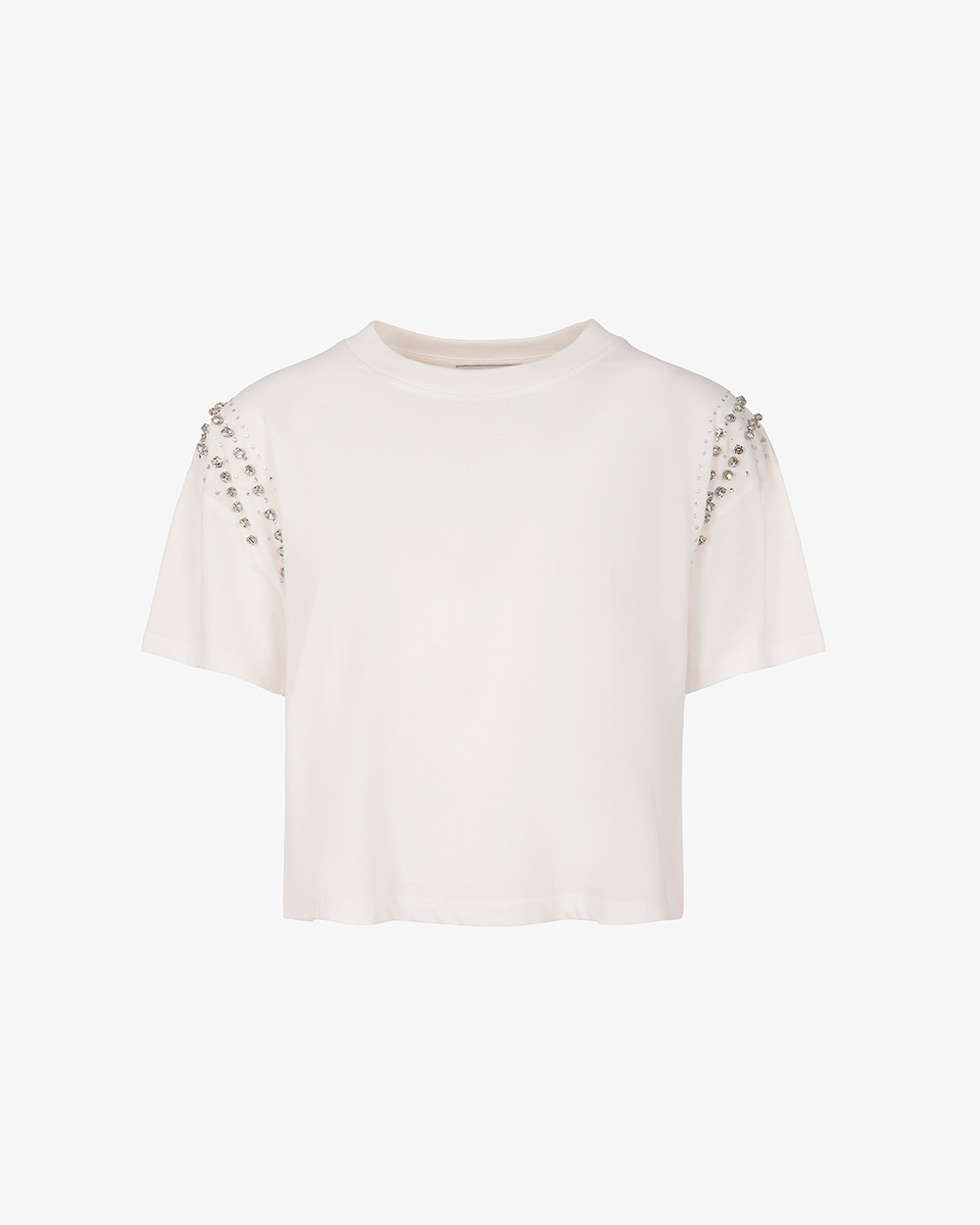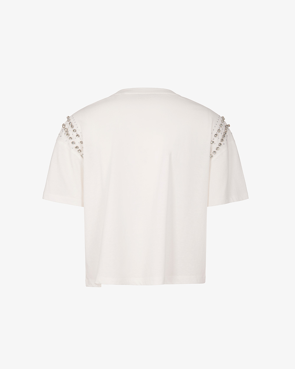 T- shirt mezza manica dettaglio applicazioni pietre.