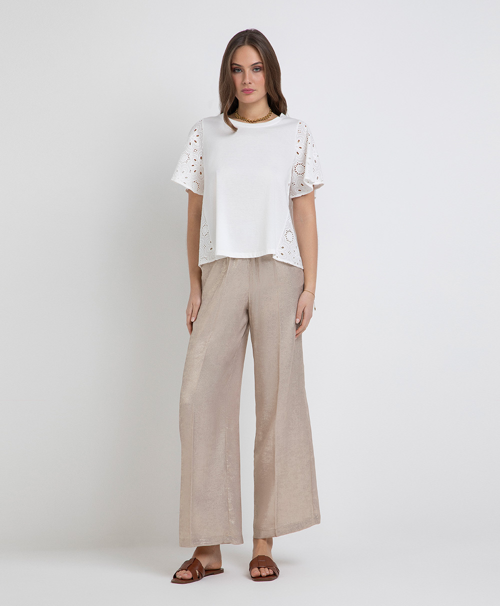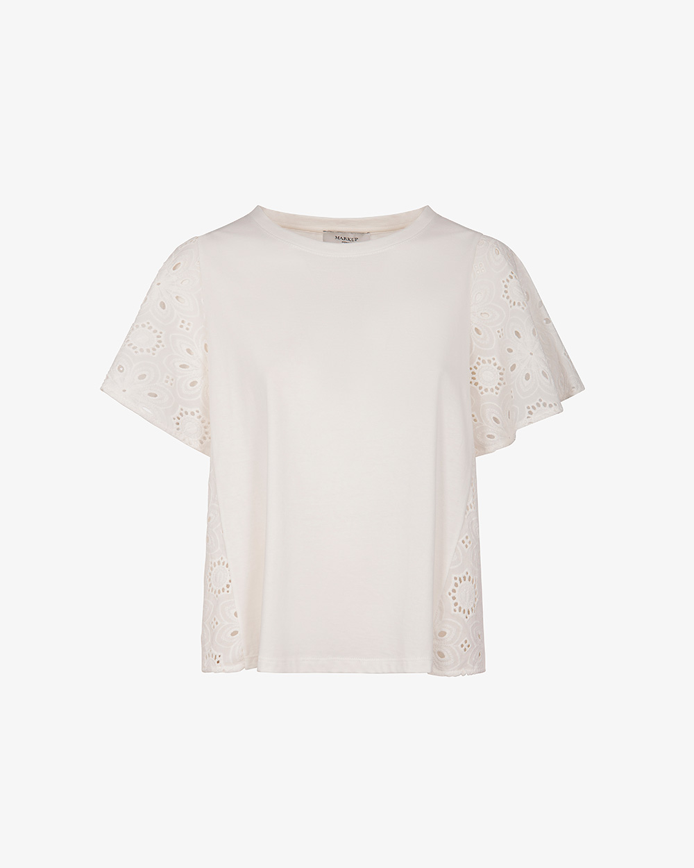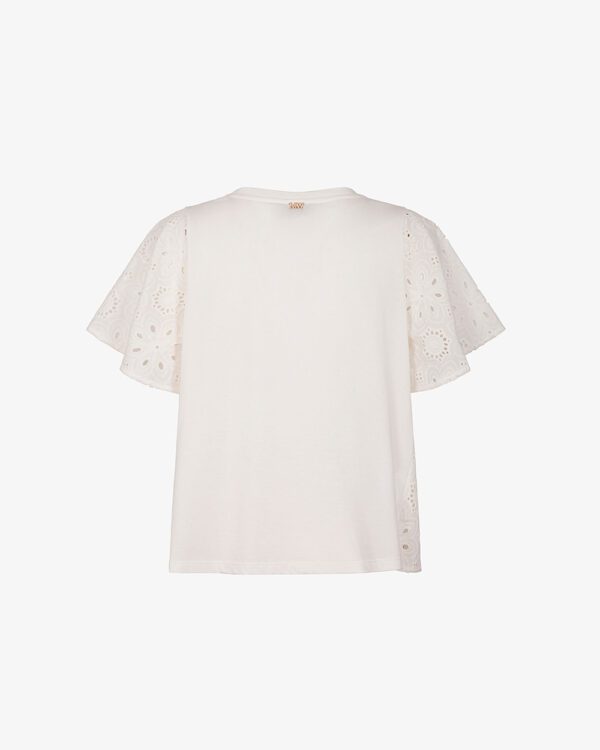 T-shirt con fianchetti e maniche in pizzo sangallo, in cotone.