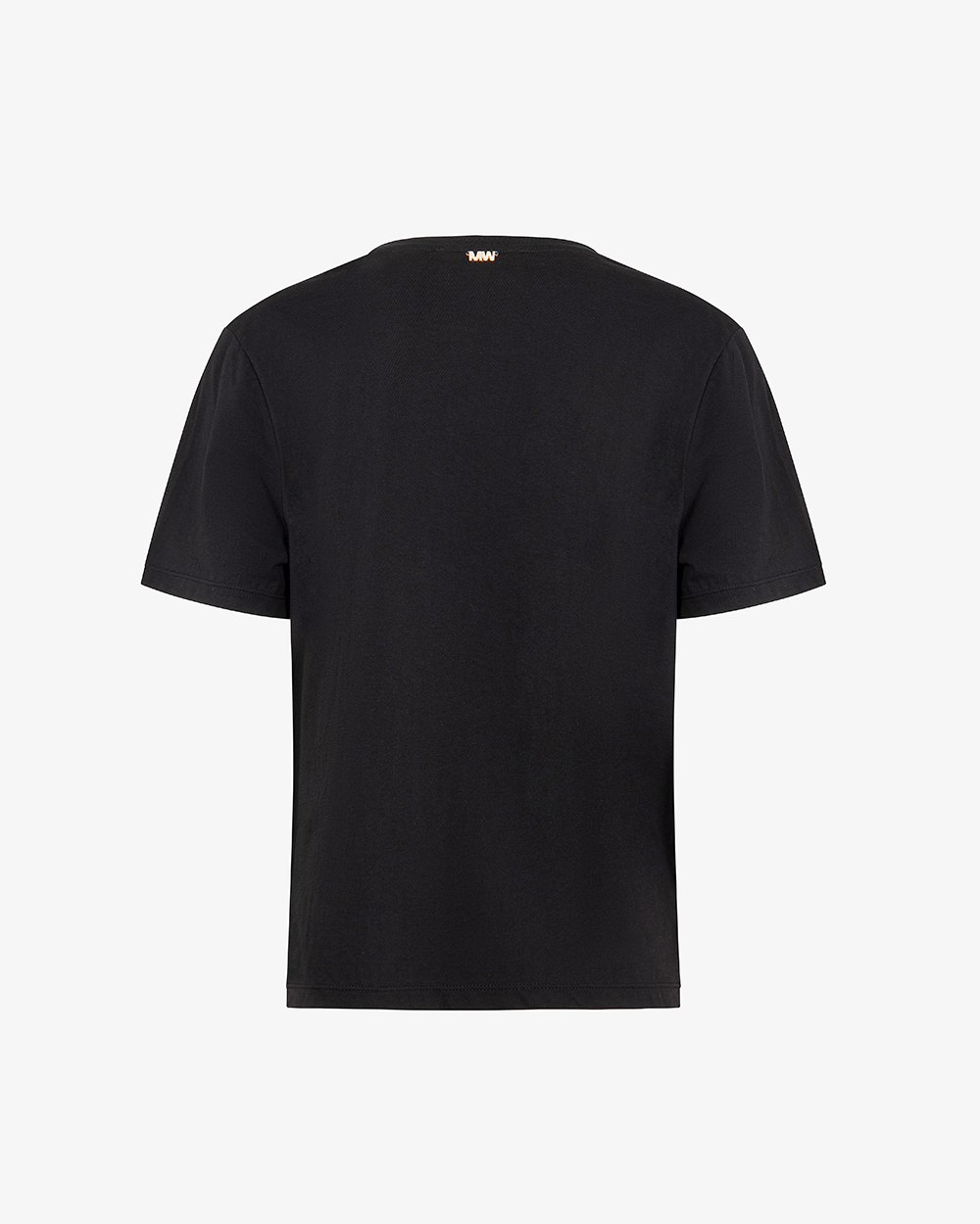 T-shirt con stampa ed applicazioni strass, in cotone.