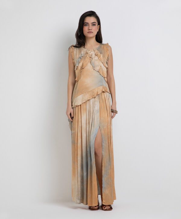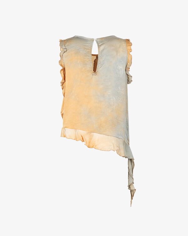 Top in raso maltinto con rouches. Chiusura sul retro con bottone. Apertura sul retro.