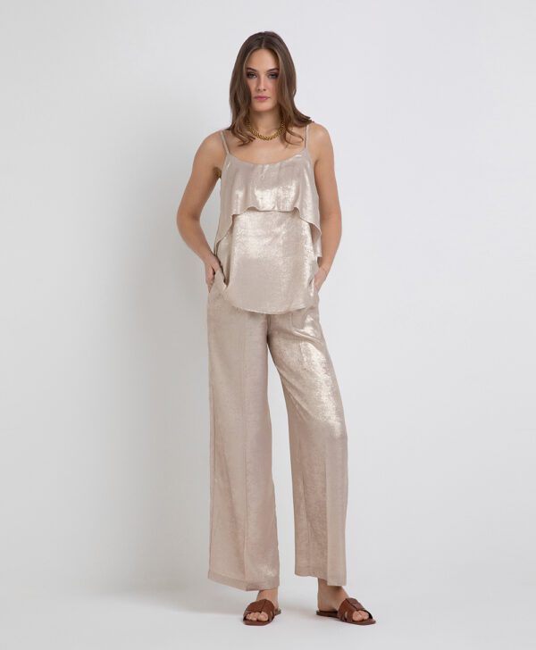 Top in tessuto effetto lamina